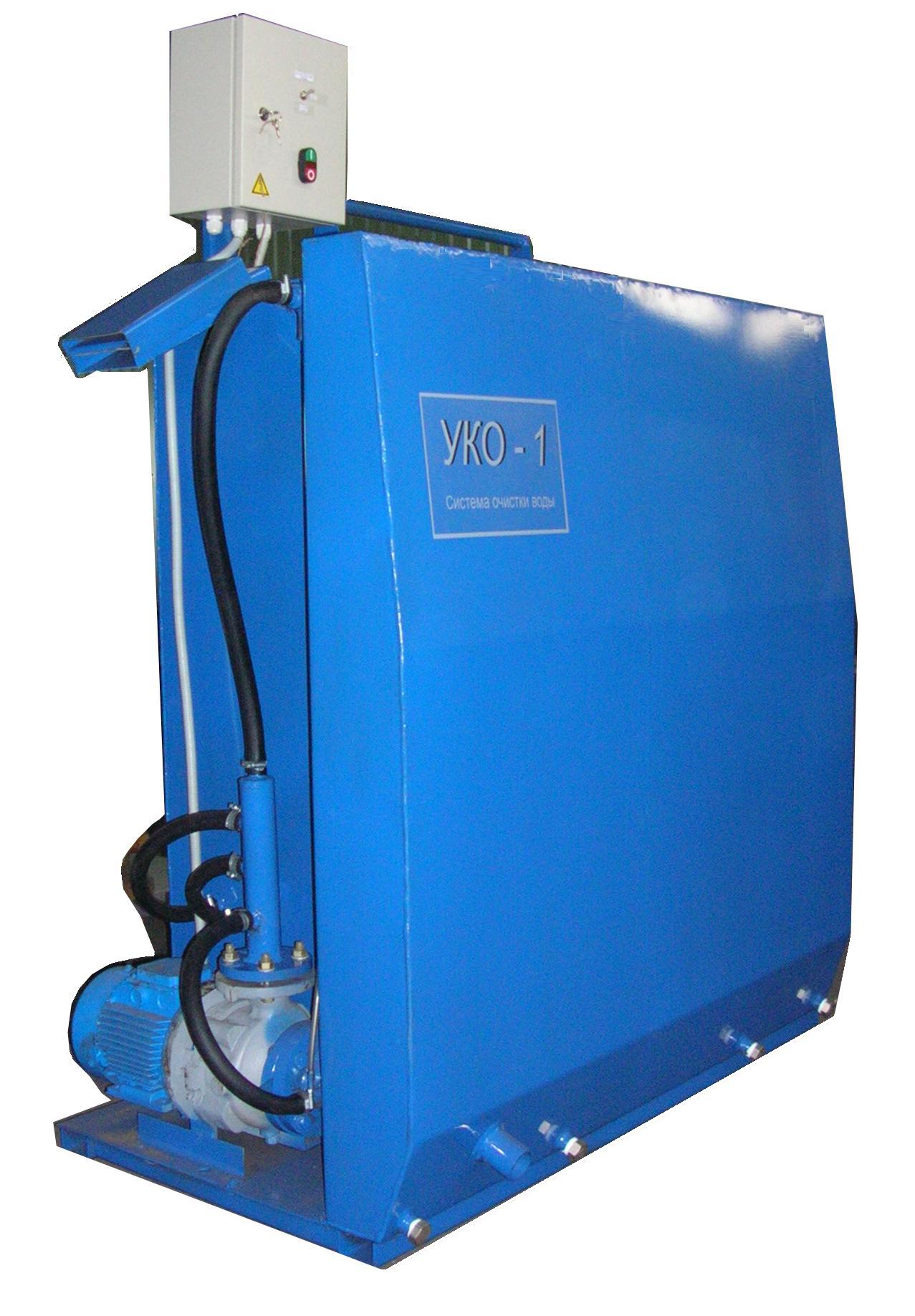 Очистная система УКО-1к состоит из флотационного устройства, тонкослойного отстойника, песчаного фильтра и резервуара очищенной воды. Производительность данной установки 1 м3/час (1,5 м3/час с баком для чистой воды).