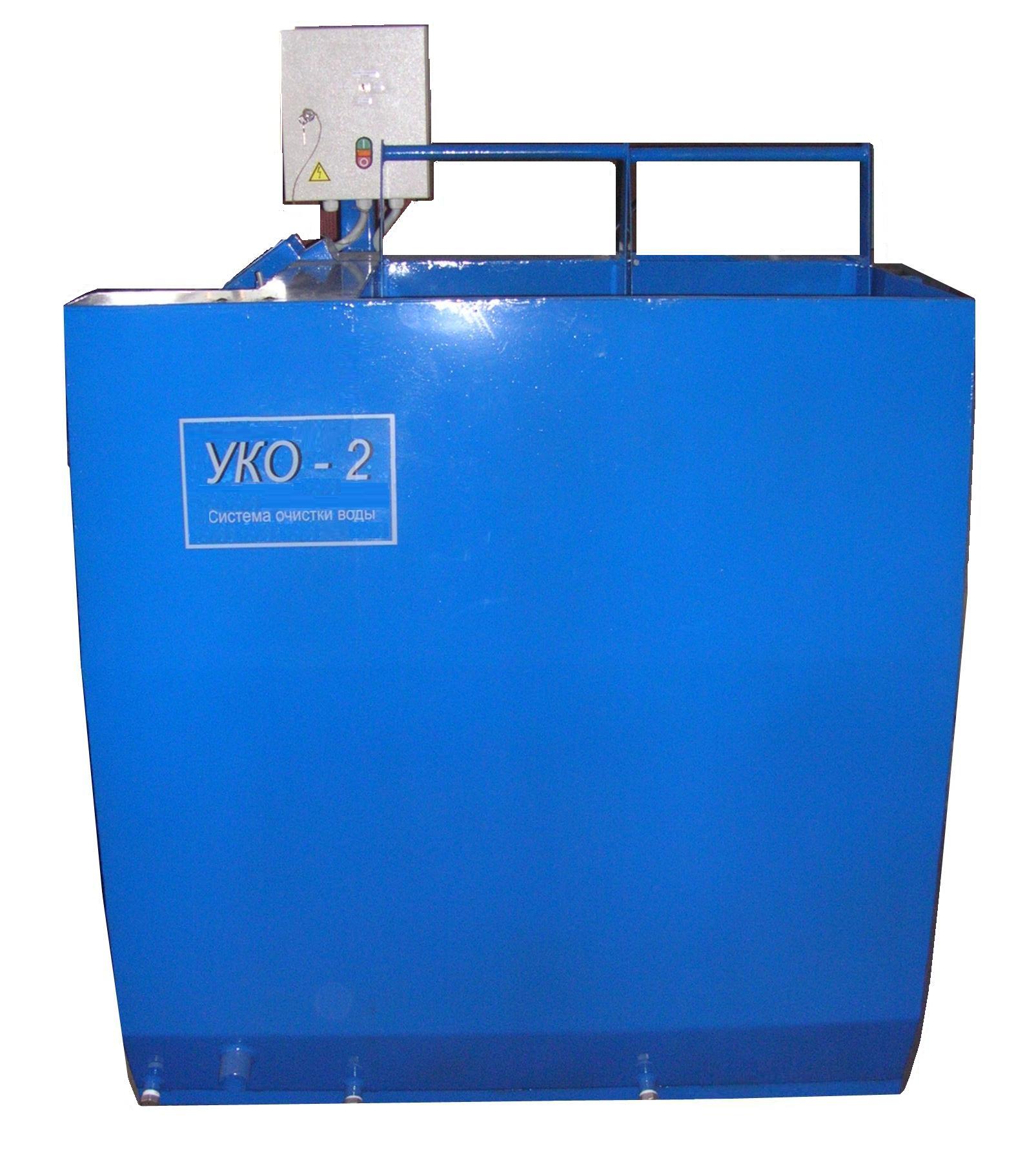 Очистная система УКО-2к состоит из флотационного устройства, тонкослойного отстойника, песчаного фильтра и резервуара очищенной воды. Производительность данной установки 2 м3/час (2,5 м3/час с баком для чистой воды).